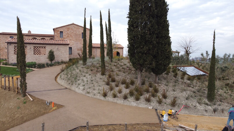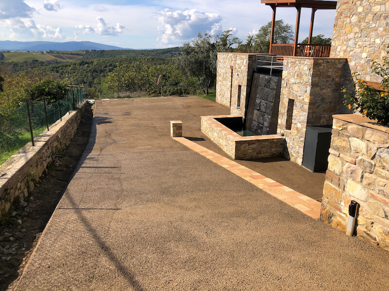 Oltre alle sue doti tecniche la pavimentazione è anche molto bella e si sposa benissimo con il paesaggio circostante. Sembra una strada sterrata e solo quando ci si avvicina si vede che non lo è.