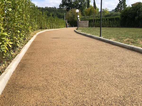 La grana della superficie ed i colori che richiamano quelli degli stabilizzati naturali le permettono di inserirsi perfettamente nell’ambiente naturale simulando perfettamente una strada sterrata. Questa è la caratteristica principale che le permette si essere accecata anche in zone vincolate.