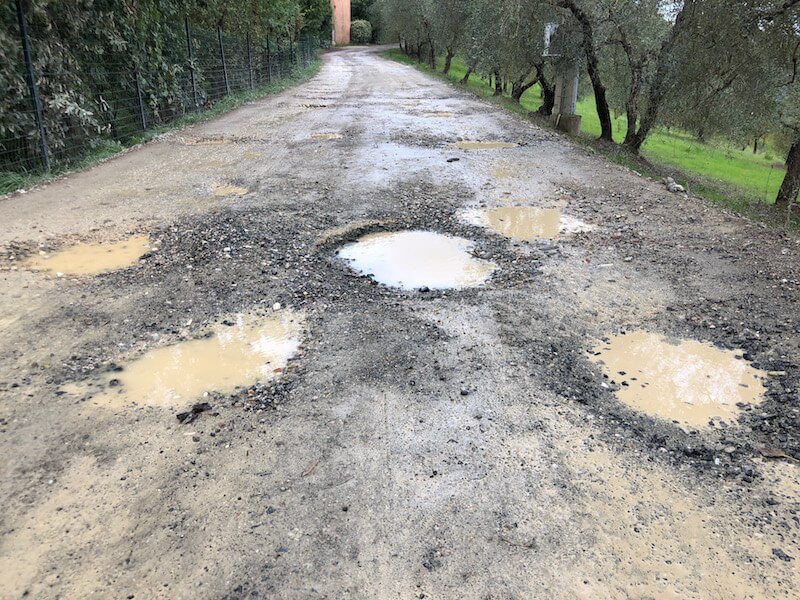 “Quando ho comprato la mia attuale casa in Valdibrana in mezzo al bosco mi è stato detto che sarebbe stato possibile realizzare solo una strada bianca. Vista la pendenza di una buona parte della strada, raggiungere la casa non era possibile con tutti i mezzi. E la manutenzione della massicciata si è rivelata subito un incubo alle prime piogge.