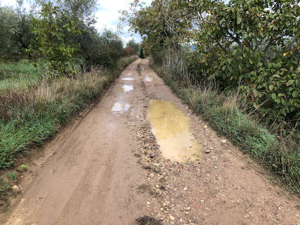 La pioggia è uno dei nemici più temibili per le strade sterrate. Nei tratti pianeggianti, a seguito delle piogge è facile assistere alla formazione di buche e pozzanghere. Tali zone tenderanno a degradare sempre di più a seguito del passaggio dei veicoli.