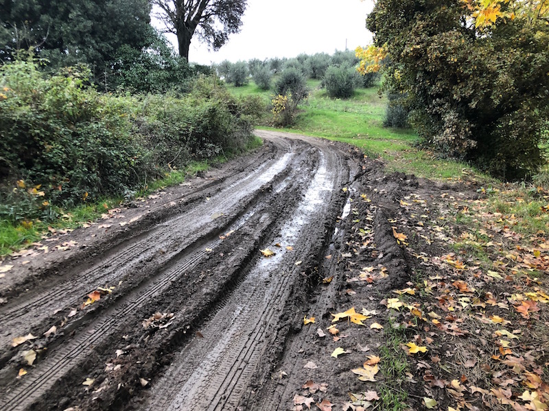 Se il fondo della strada è carente, in caso di pioggia si formerà sulla superficie della strada del fango che renderà veramente difficoltosa la percorrenz facendo sprofondare le ruote dei veicoli .
